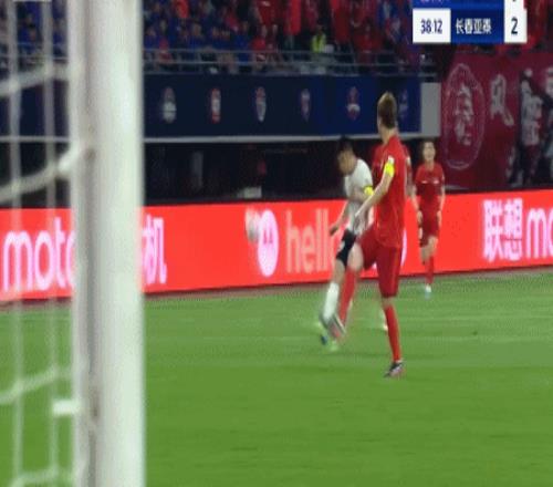 北京时间4月12日,中超联赛第6轮,长春亚泰客场对阵梅州客家,比赛第38分钟,谭龙在反击中发现梅州客家门将郭全博站位靠前,于是在刚过半场不远的位置选择直接吊门,郭全博回追不及,皮球飞进球网,亚泰2-0!