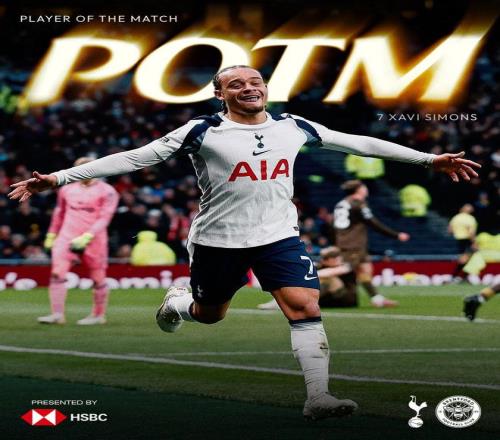 北京时间12月8日凌晨,热刺官方消息,传射建功的哈维-西蒙斯当选热刺2-0布伦特福德一役队内最佳球员。