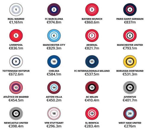 金钱联赛:皇马笑傲世界,英超垄断第二梯队