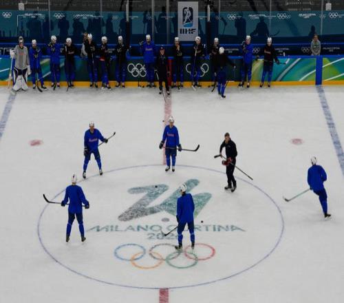 2月3日,法国男子冰球队在米兰圣朱利亚冰球馆训练。(美联社)