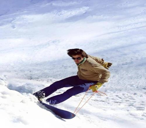 (图 / Jake在佛蒙特州的雪山上测试早期BURTON单板的场景)