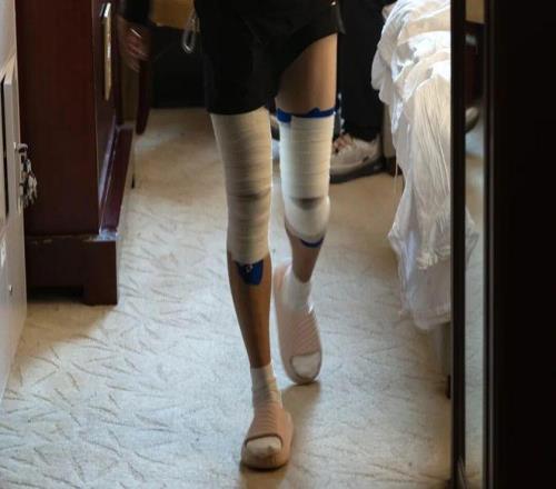 徐梦桃缠满绷带的双腿/图源:新华社