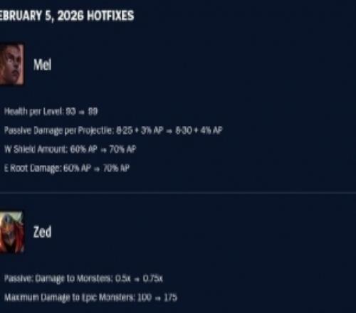 热补丁:梅尔成长生命值和法术加成等数值加强劫对野怪伤害增加 -