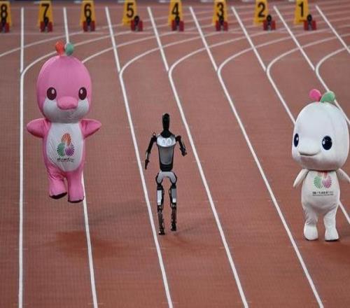 你猜谁赢了飞人大战前,十五运会吉祥物与机器人竞赛百米跑 -