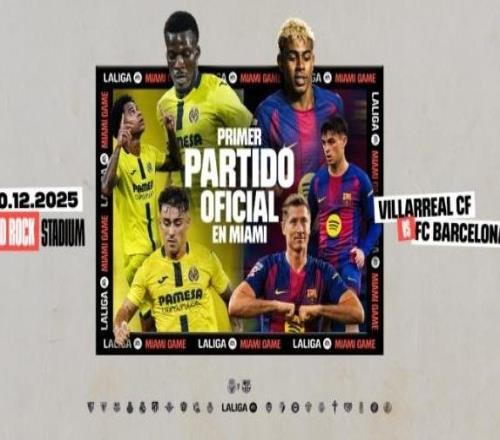 西甲官方:第17轮比利亚雷亚尔VS巴萨在迈阿密举行