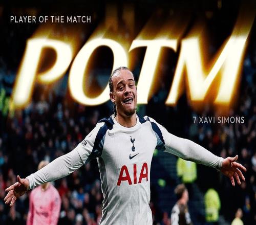 1射1传,哈维西蒙斯当选热刺20布伦特福德一役队内最佳球员 -