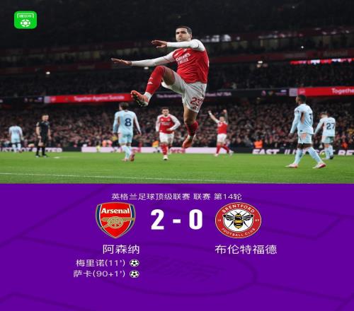 剑南春阿森纳20布伦特福德,梅里诺传射,萨卡建功 -